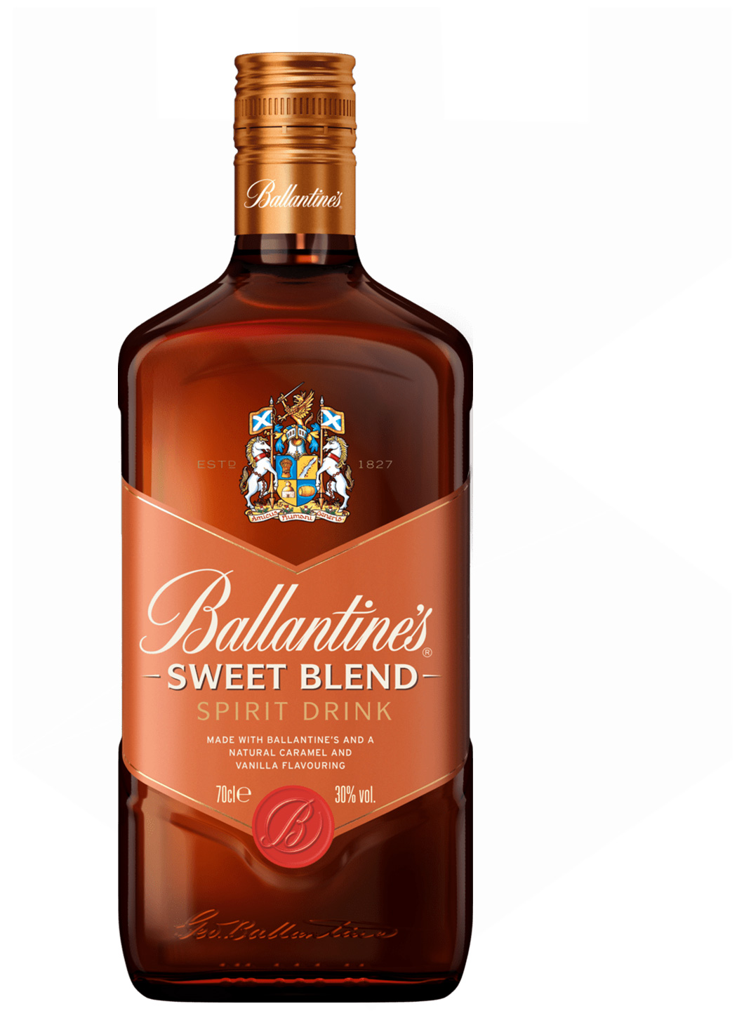 Ballantine's Sweet Blend are un profil aromatic prietenos și atrăgător, în care se regăsesc note de alune, vanilie și caramel, completate de accente de măr caramelizat ce adaugă profunzime.