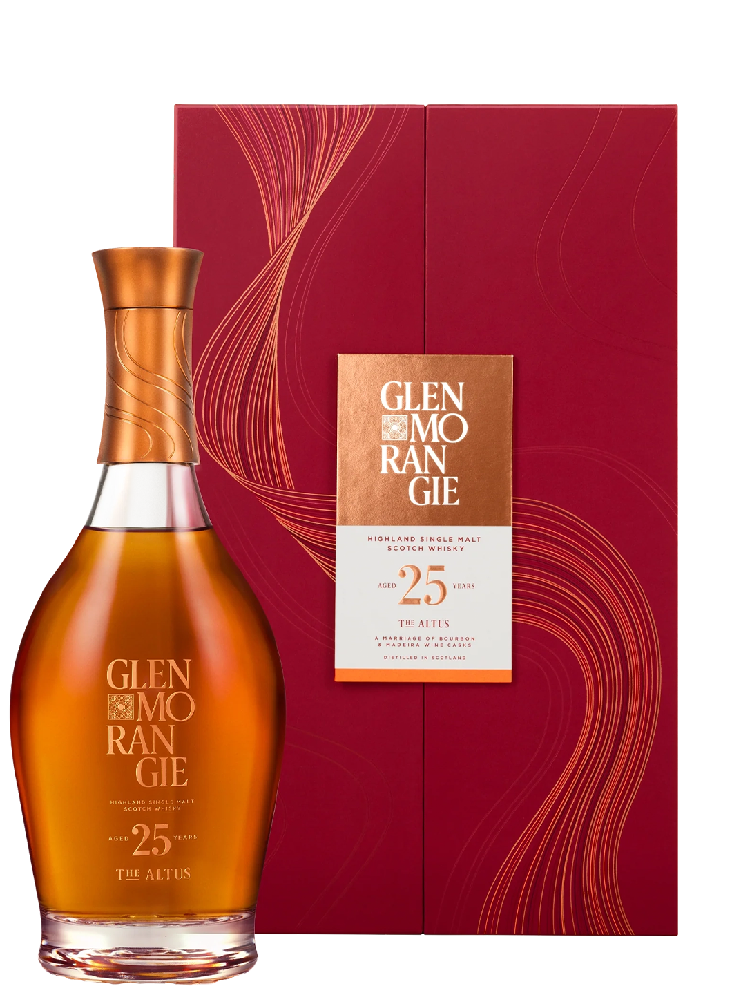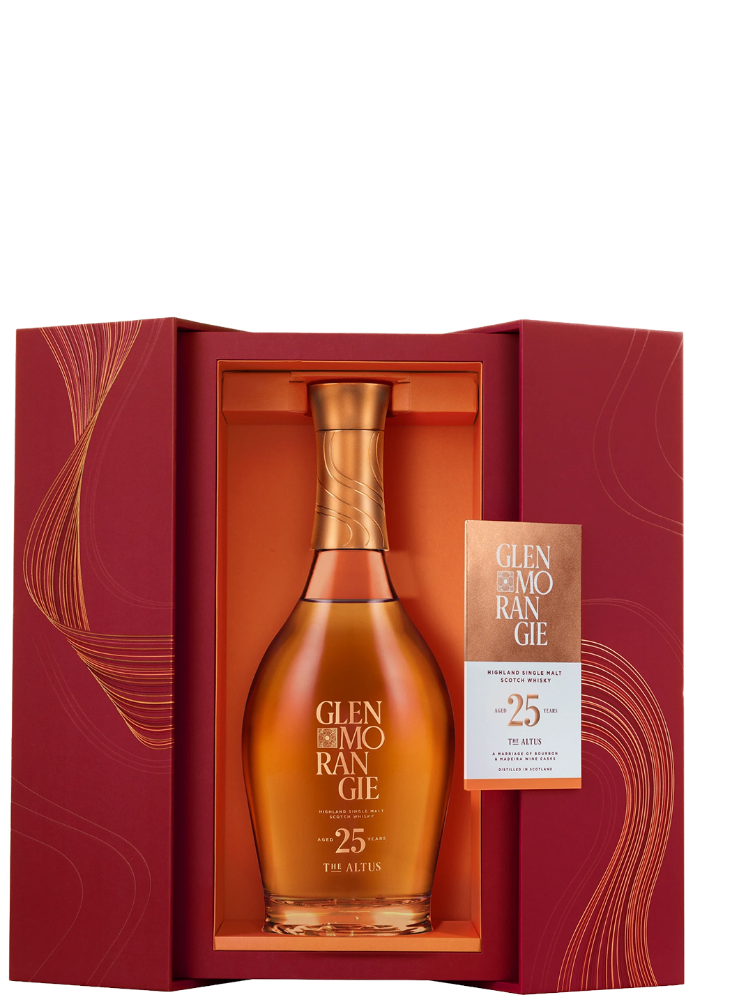 Glenmorangie 25 YO se deschide cu un profil aromatic sofisticat, în care note florale de garoafă, trandafir și floare de portocal se împletesc cu accente de miere, piersică, vanilie, migdale și caramel cu nuci. Buchetul este amplu și echilibrat, oferind o impresie elegantă și complexă.
