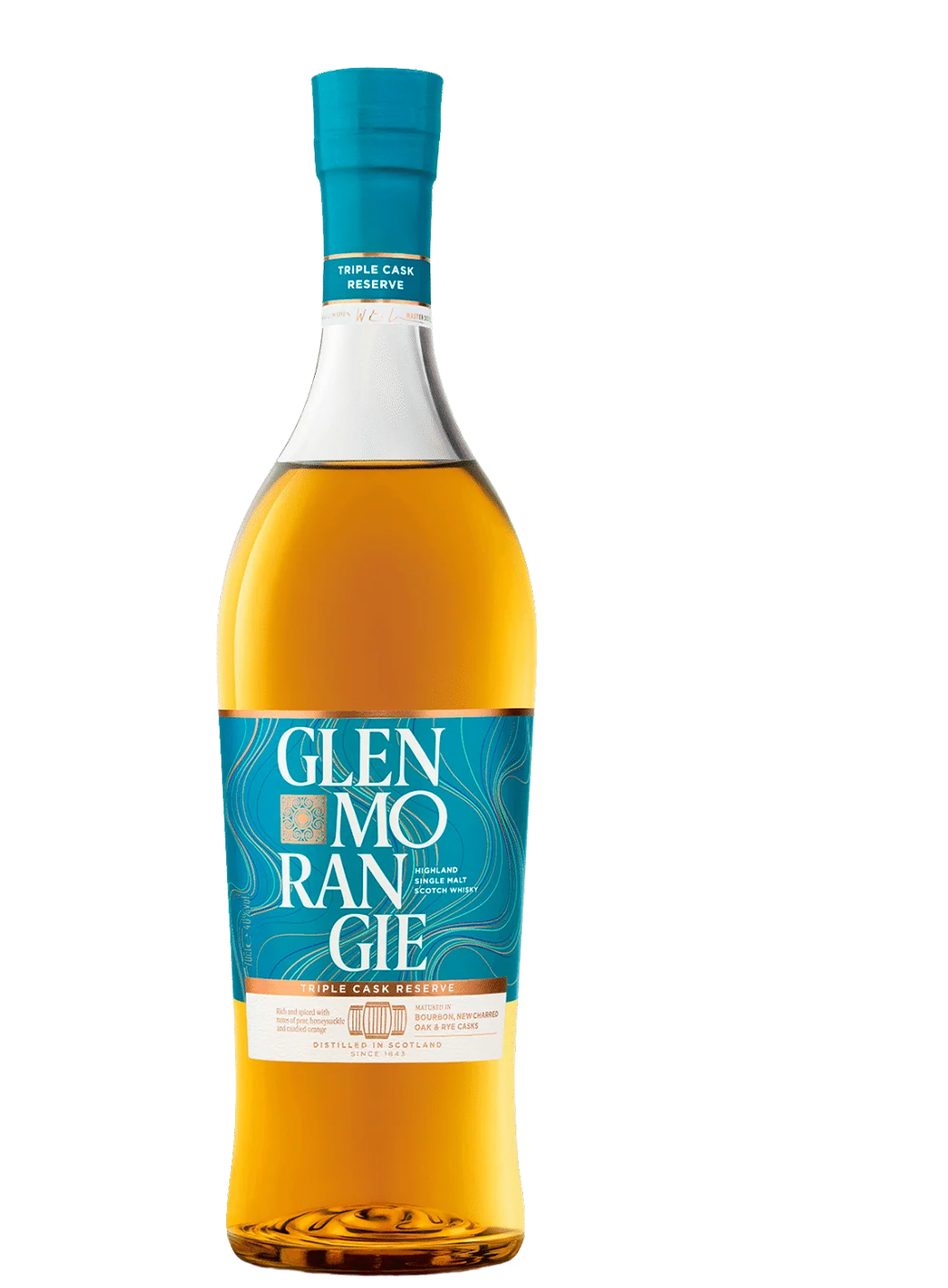 Glenmorangie Triple Cask impresionează printr-un buchet tropical și apetisant, unde perele zemoase și vanilia se împletesc cu note de coajă de portocală confiată, caprifoi și grapefruit. Aromele amintesc de bomboane fierte cu aromă de pară, iar în fundal apar condimente fine – scorțișoară, cuișoare și nucșoară – care adaugă profunzime și echilibru, susținute de o dulceață amplă și bine integrată.