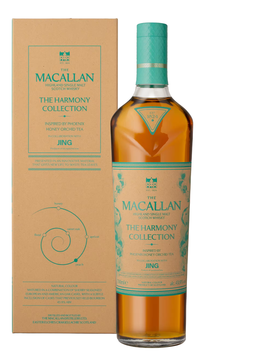 Macallan Harmony Jing se remarcă printr-un profil aromatic sofisticat, unde mierea florală și ciocolata neagră se îmbină cu note de coajă de portocală, completate de accente discrete de stejar, scorțișoară și cafea prăjită. Pe măsură ce se deschide, whisky-ul dezvăluie nuanțe fine de migdale, fructe confiate și vanilie, conturând un nas elegant și bine structurat.